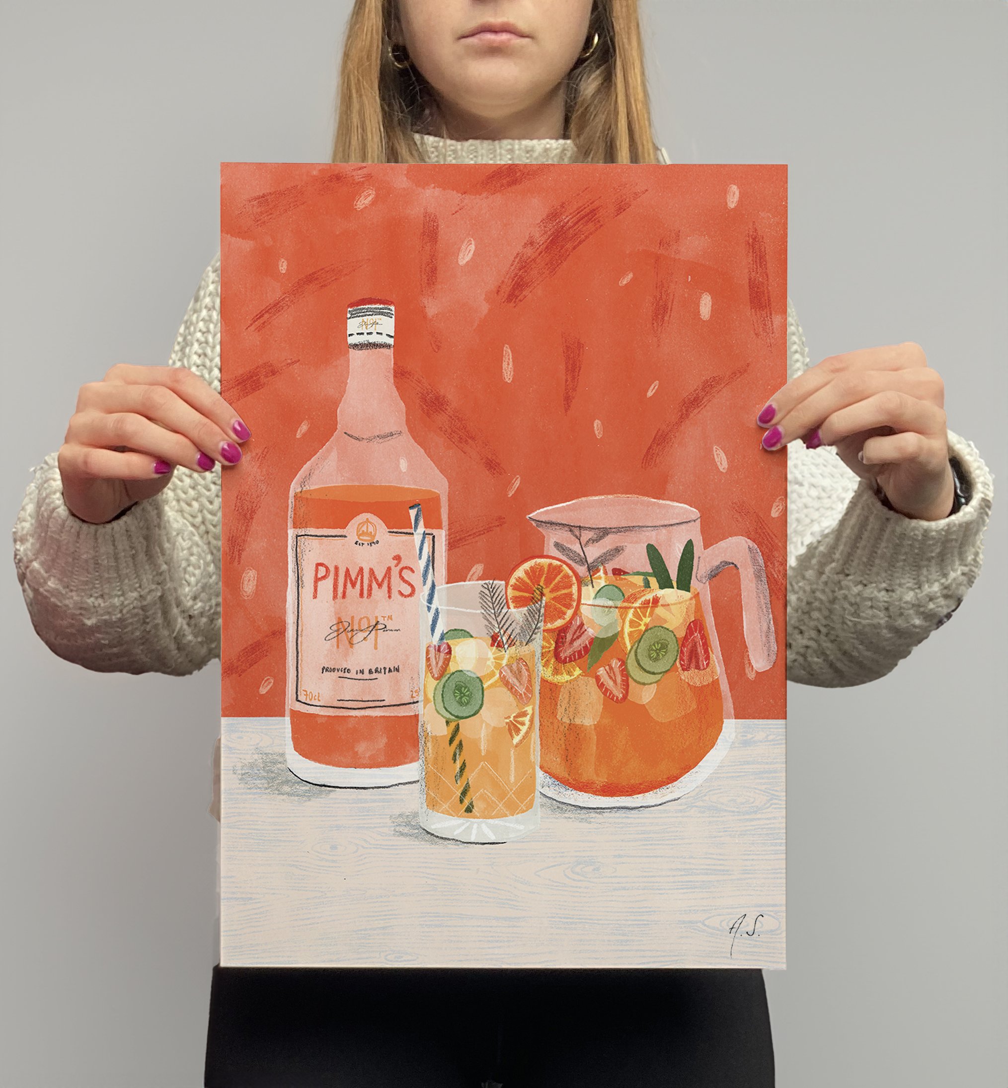 Brighten up your walls for summer with this juicy glass of Pimm's! Available in A3 and A4 sizes, beautiful quality digital print on smooth, thick 300gsm paper.